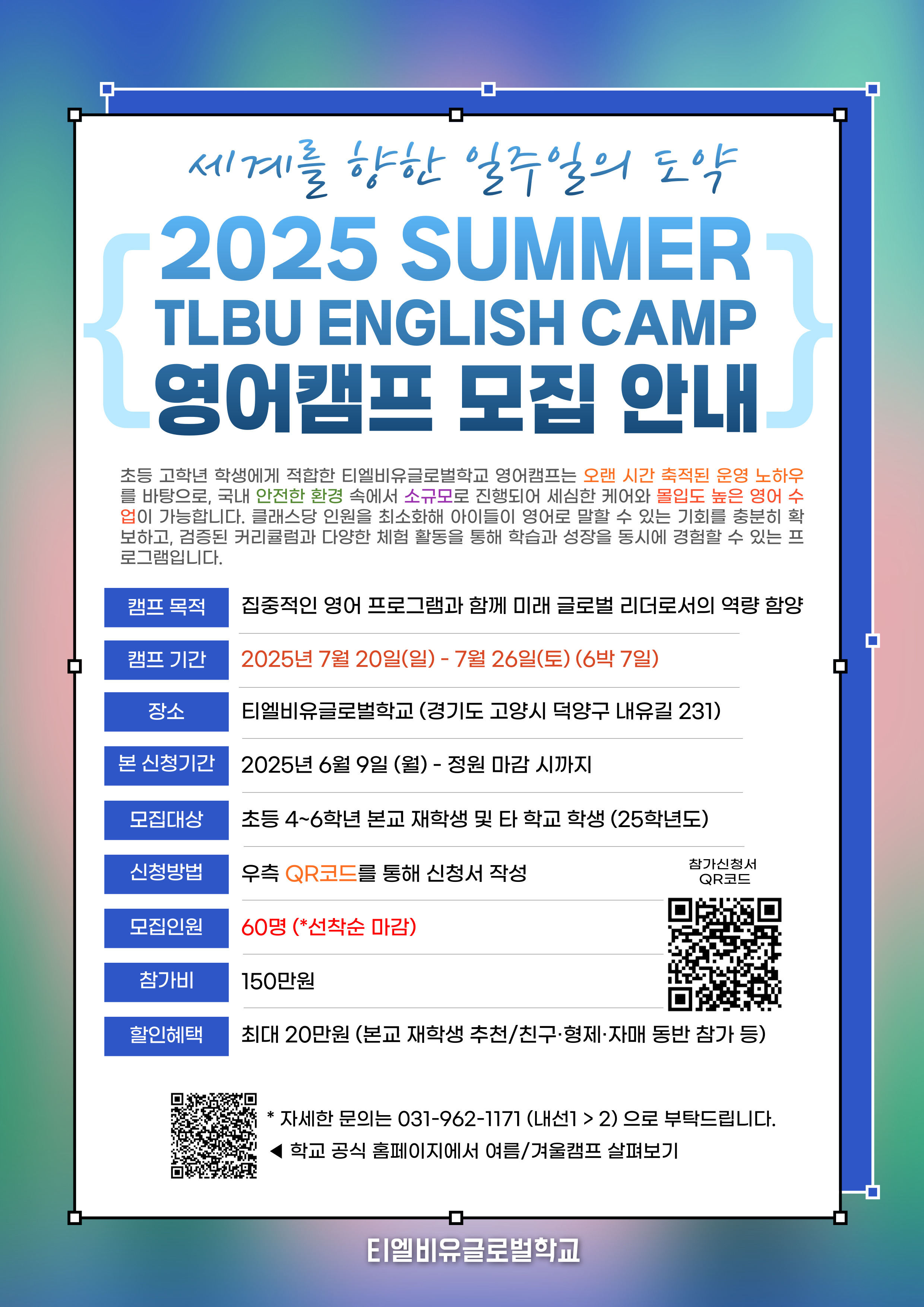 2025. 티엘비유 글로벌 학교 영어캠프 안내